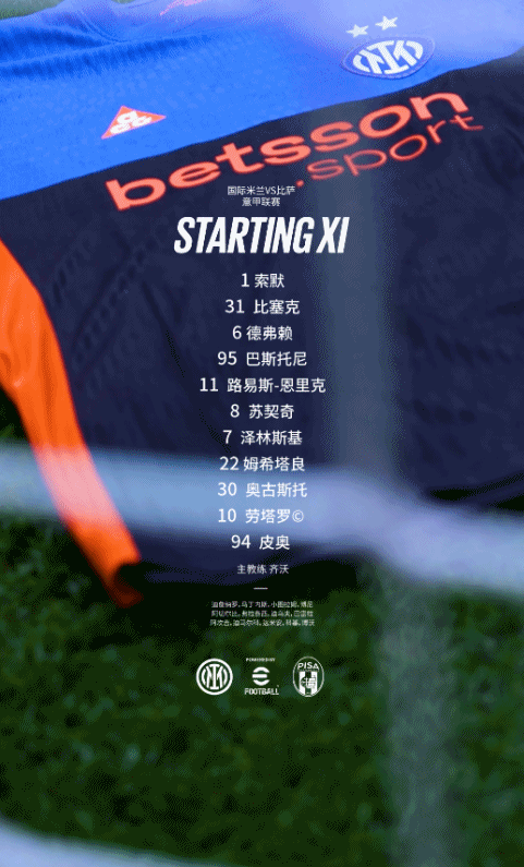 北京时间1月24号3:45,2025/26赛季意甲联赛第22轮主场对阵比萨。上半场对手先进两球的情况下,泽林斯基点射破门,劳塔罗和皮奥各入一球上演让二追三。下半场迪马尔科再下一城,博尼替补建功,补时阶段姆希塔良也斩获一球,最终我们6比2逆转比萨!